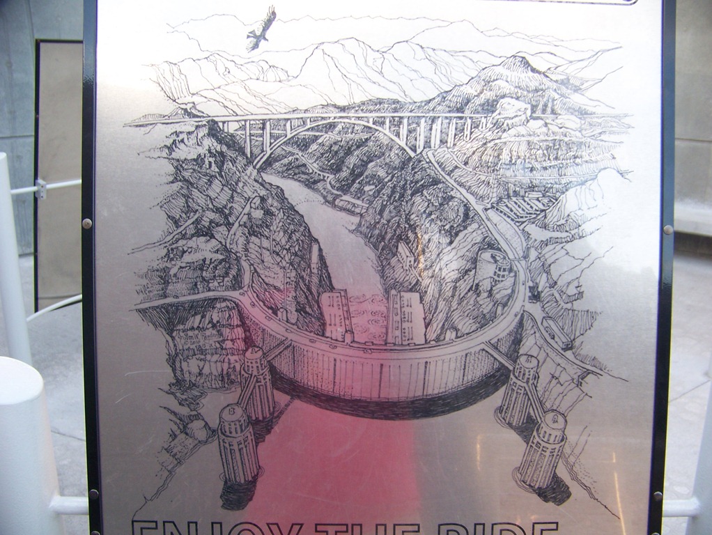 Délután fél 5 felé a Hoover gát felé vettük az irányt. Először a gát által duzzasztott Mead tavat láttuk meg, majd a 2010 októberében átadott Mike O’Callaghan – Pat Tillman Emlék Hídról remek kilátást kaptunk a gátról.