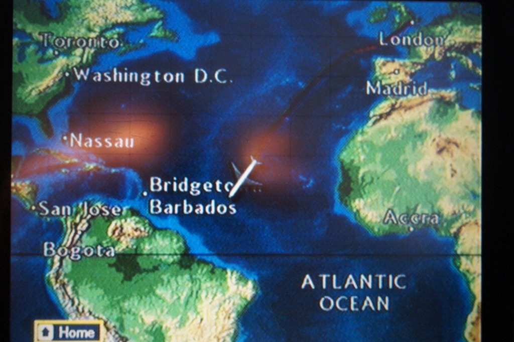 A csütörtöki nap teljes egészében az utazással telt. Kora reggeli indulás Ferihegyről, majd Londoni átszállással célba vettük Rio-t (végig British Airways járatokon utaztunk). A London – Rio járat menetideje kb. 12 óra, ezalatt kétszer szolgáltak fel kaját, mindkét esetben felejthetőt. A gépünk egy Boeing 777-es volt, és minden fejtámla monitorral volt felszerelve, ahol a pillanatnyi helyzetünkön kívül filmeket is lehetett nézni. Természetesen az előttem lévő monitor kb. az út ¾-énél elromlott. Megfigyelhető volt, hogy az egyenlítőhöz közeledve egyre párásabb volt a levegő, de viharba szerencsére sehol sem futottunk (repültünk).