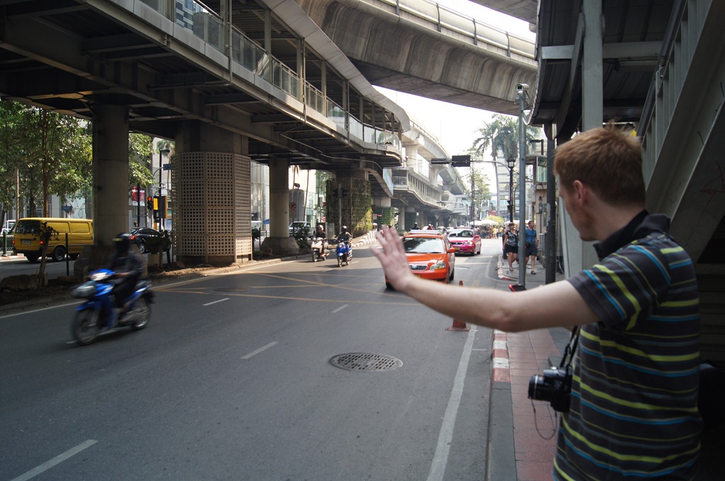 Szerdán reggel, némileg kipihentebben ismét célba vettük a várost, ezúttal már konkrétabb célokkal. Az első megoldandó probléma a közlekedés volt, ugyanis választott célpontunkhoz nem vezet sky-train, így taxit kellett fognunk. Bár taxi rengeteg van az utcákon, ez mégsem bizonyult teljesen triviális feladatnak. Részben a tájékozódásunk hiánya, részben a kommunikációs problémák miatt. Mint kiderült, nem mindegy a taxik színe sem. Mindenesetre végül odaértünk, és még sokat sem fizettünk (10 km útért kb. 800 Ft-ot).