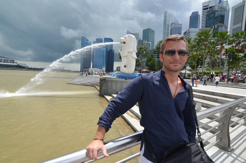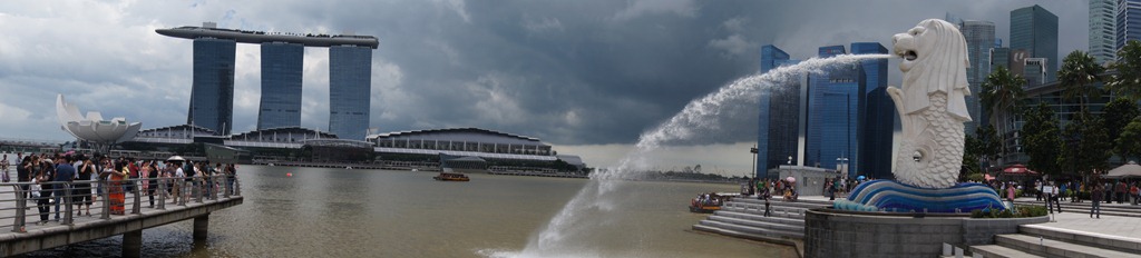 Délutánra azért csak eljutottunk a felhőkarcolók lábánál az öbölben álló merlionhoz, Szingapúr egyik jelképéhez. Itt már nem volt kihaltság. Rengeteg turista, többségében indiaiak és más ázsiai népek.