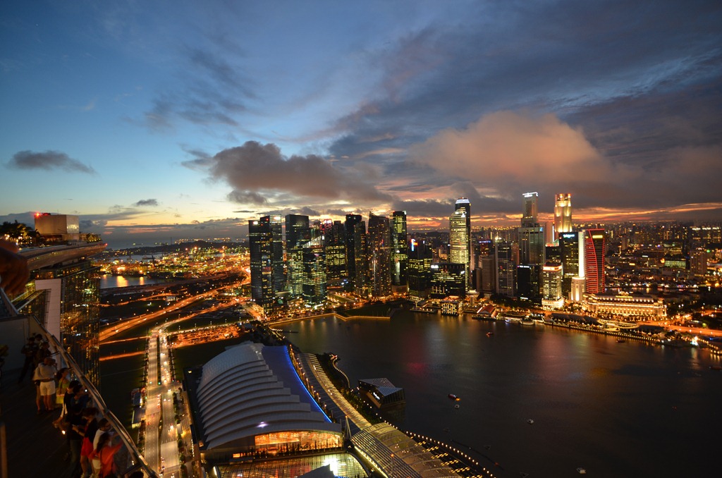 Az öböl környékén rengeteg látnivaló és attrakció található. Itt van a világ legnagyobb óriáskereke, a tetőn lévő “infinity pool” medencéjéről híres Marina Bay Sands szálloda, a Forma 1-es pálya és még egy csomó dolog. Először az óriáskerékre ültünk fel, ami nem volt olcsó, de legalább lassú, így volt idő nézelődni.