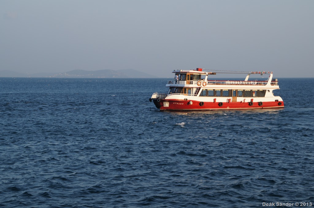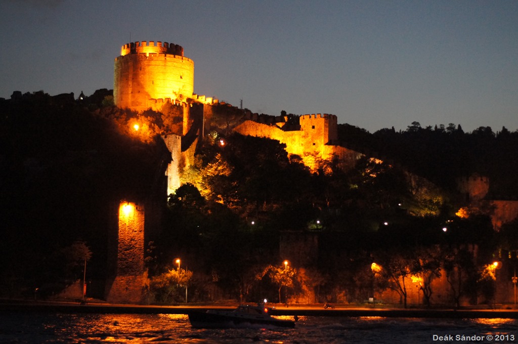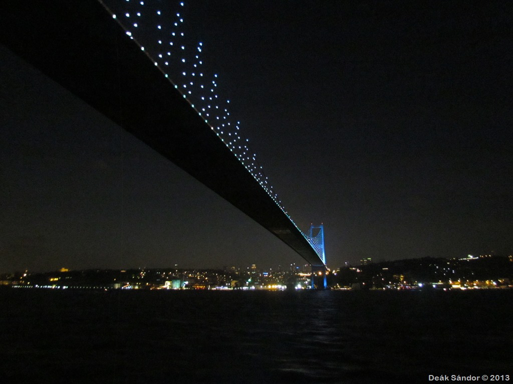 Aztán a térre visszatérve befűztek bennünket egy esti hajózásra a Boszporuszon. A több mint 2 órás út közben áthajóztunk a Galata híd alatt, bekanyarodtunk az Aranyszarv-öbölbe, majd tovább haladtunk a Boszporusz-híd felé, amely összekapcsolja a város európai és ázsiai felét.