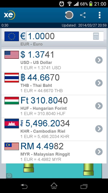Külföldi utazásnál jól jön ha képben vagyunk az aktuális árfolyamokkal, amit főleg akkor nehéz fejben tartani, ha több országba is ellátogatunk. Ez az alkalmazás segítségünkre lesz a váltásban. Ha van internet kapcsolatunk, azonnal frissíti az árfolyamokat, de internet kapcsolat nélkül is remekül működik.