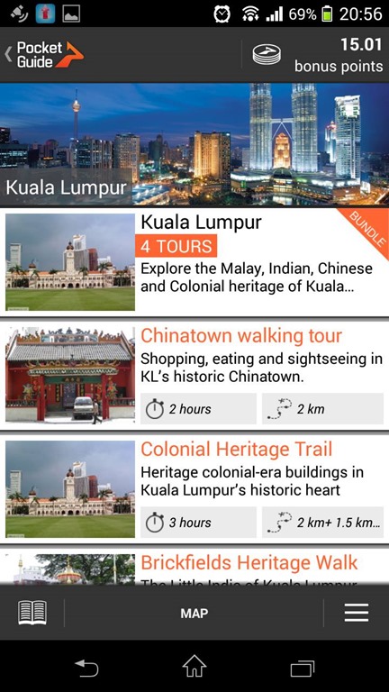 A TripAdvisor Offline City Guide-jaihoz hasonlóan ez az alkalmazás is tartalmaz térképet, javasolt útvonalakat, de ennek teljes mértékben ez a profilja. Egy-egy városban általában több és jobb javasolt fél-egész napos túrát tartalmaz. A javasolt útvonalak mentén található attrakciókhoz érve pedig egy pár perces tájékoztatót mond (leginkább angolul) az adott látványosságról, mintha egy idegenvezetővel sétálgatnánk.