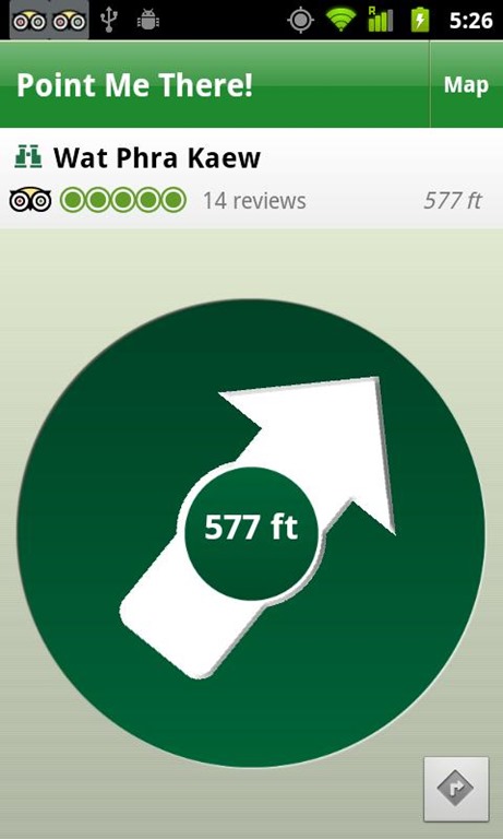 Hasznos funkció még a Point Me There! (vezess oda) funkció. Itt megmutatja a kiválasztott célpont távolságát, és hogy pontosan milyen irányba van tőlünk. A szintén az alkalmazás részeként letöltődő térképpel együtt jól használható gyalogos navigációra.